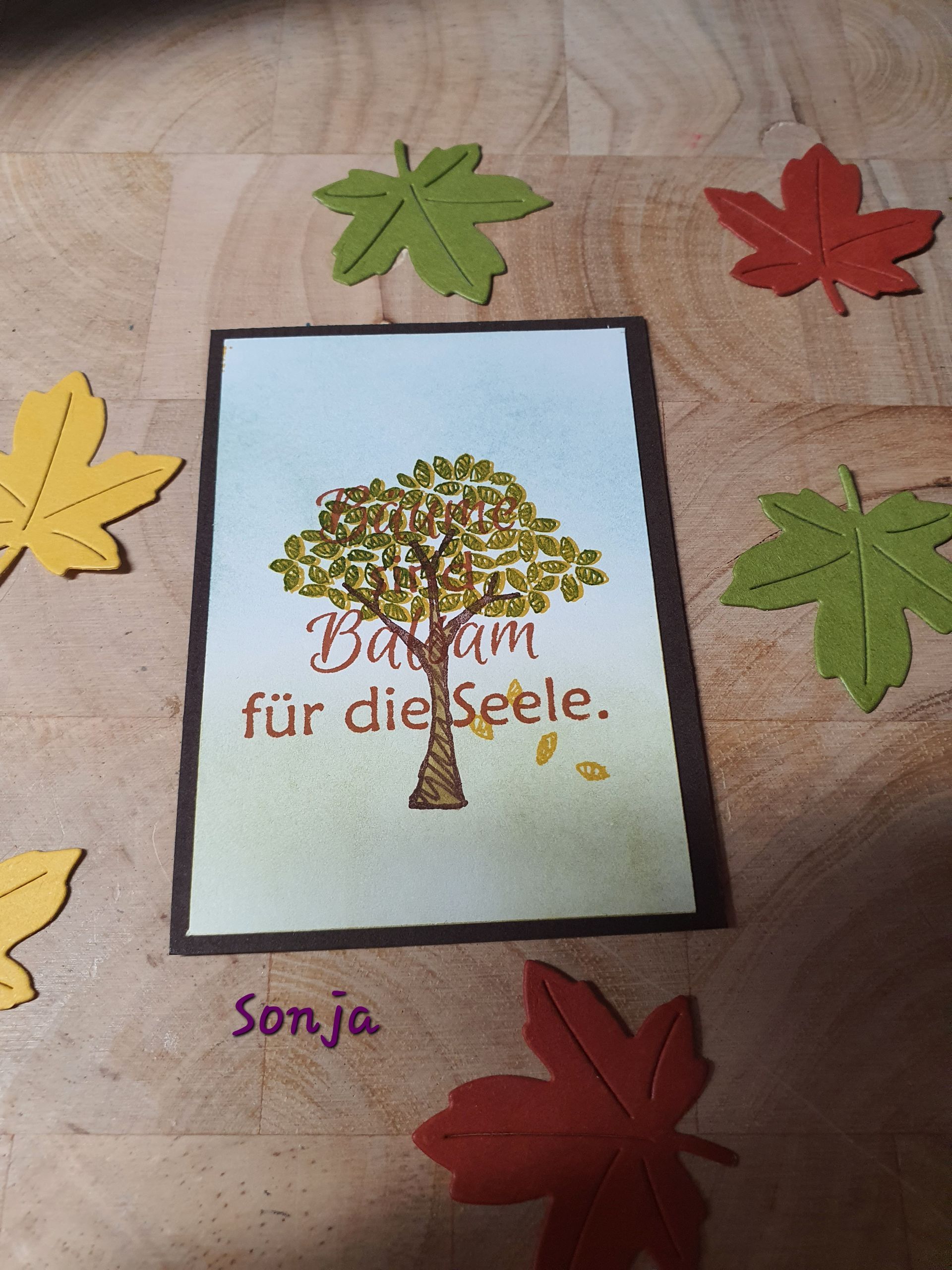 Der Baum sollte demnach im Vordergrund stehen, was und wie ihr die ATC Karte gestaltet bleibt Euch überlassen.