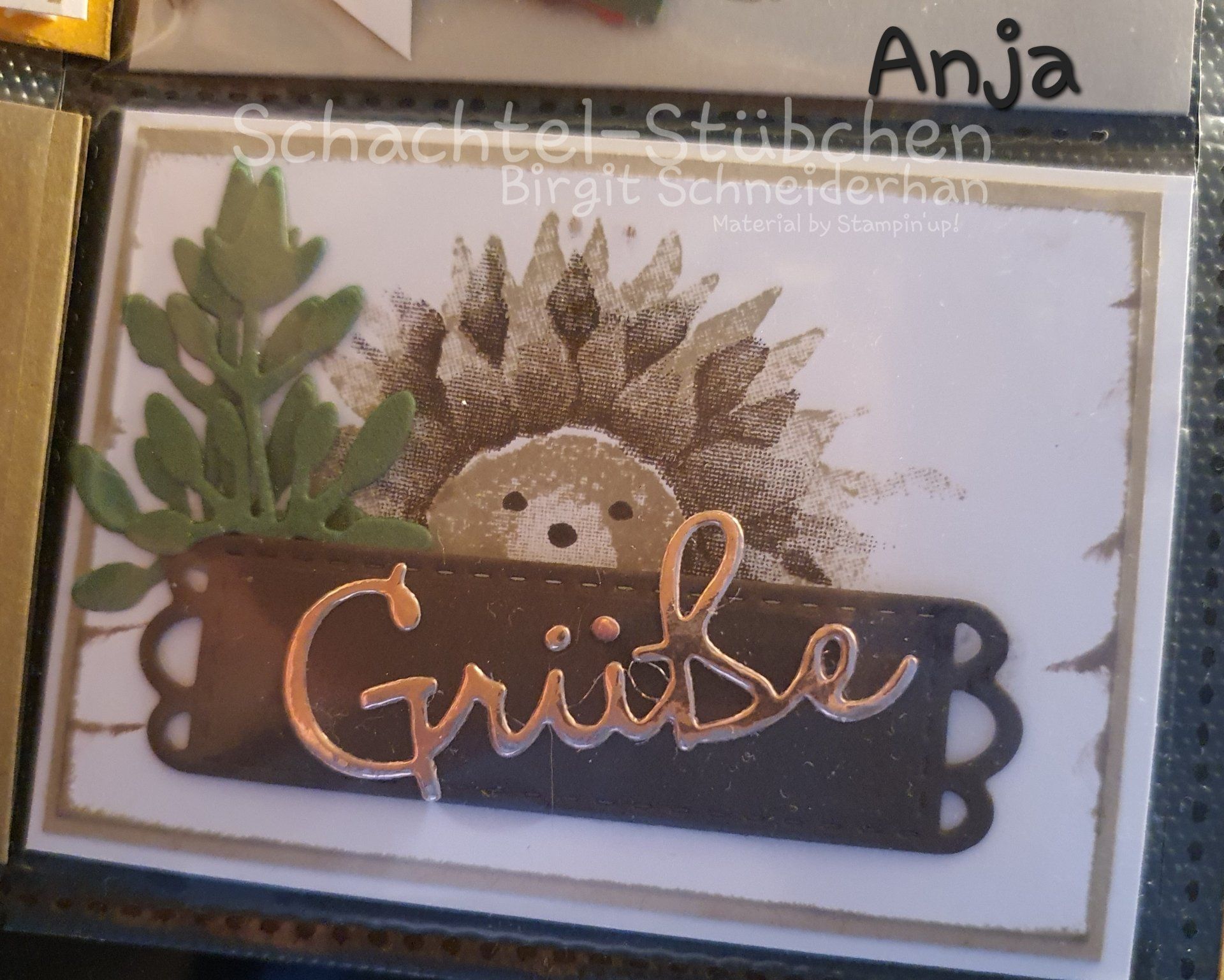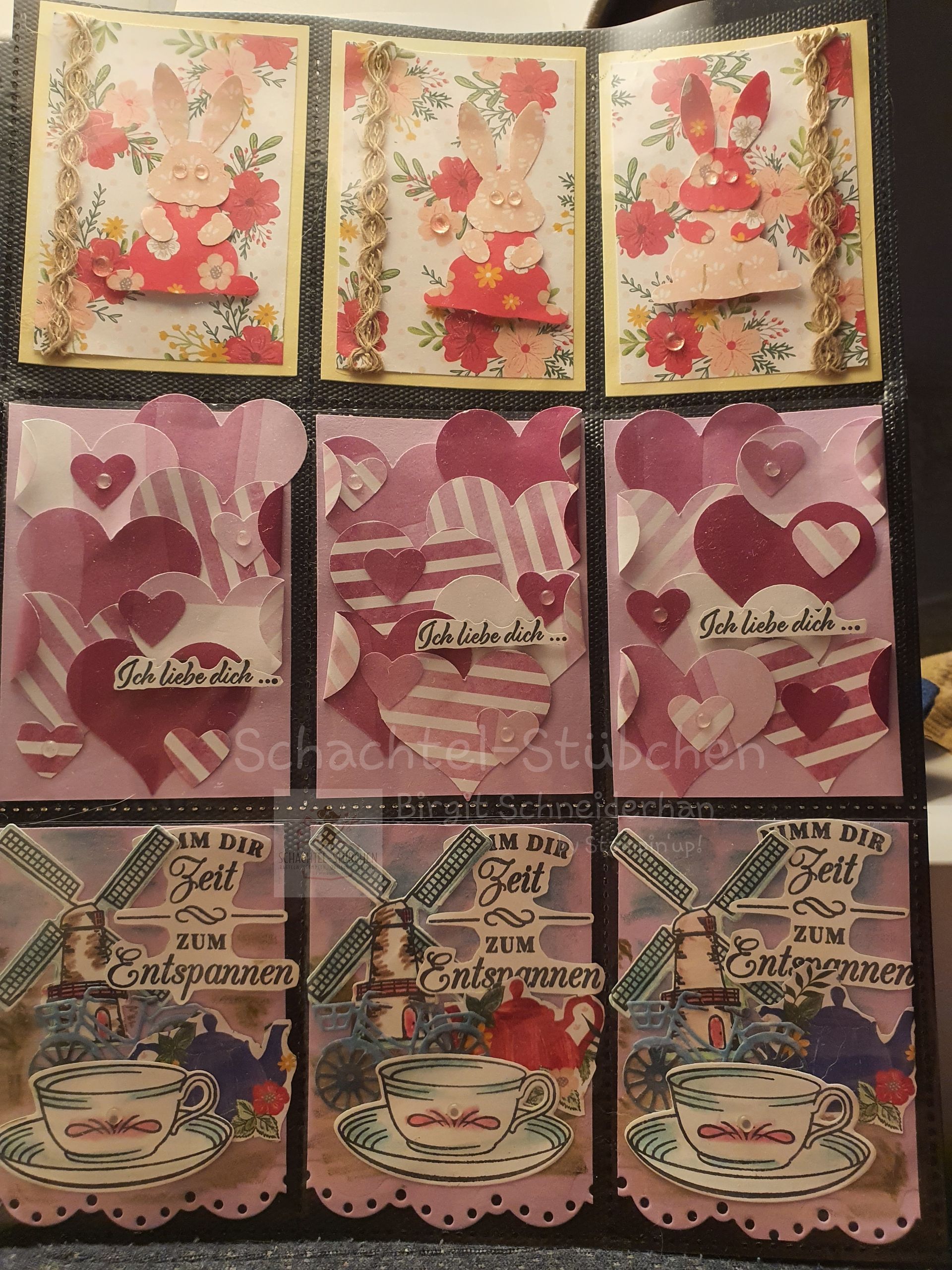 Schachtel-Stübchen, Birgit Schneiderhan, Kajütenweg 13, 22629 Großefehn. Bitte legt einen an Euch adressierten und frankierten Rückumschlag bei. Vielen Dank. Ob ihr die Kärtchen schon in einer Hülle schickt oder noch nicht ist nicht so ausschlaggebend.