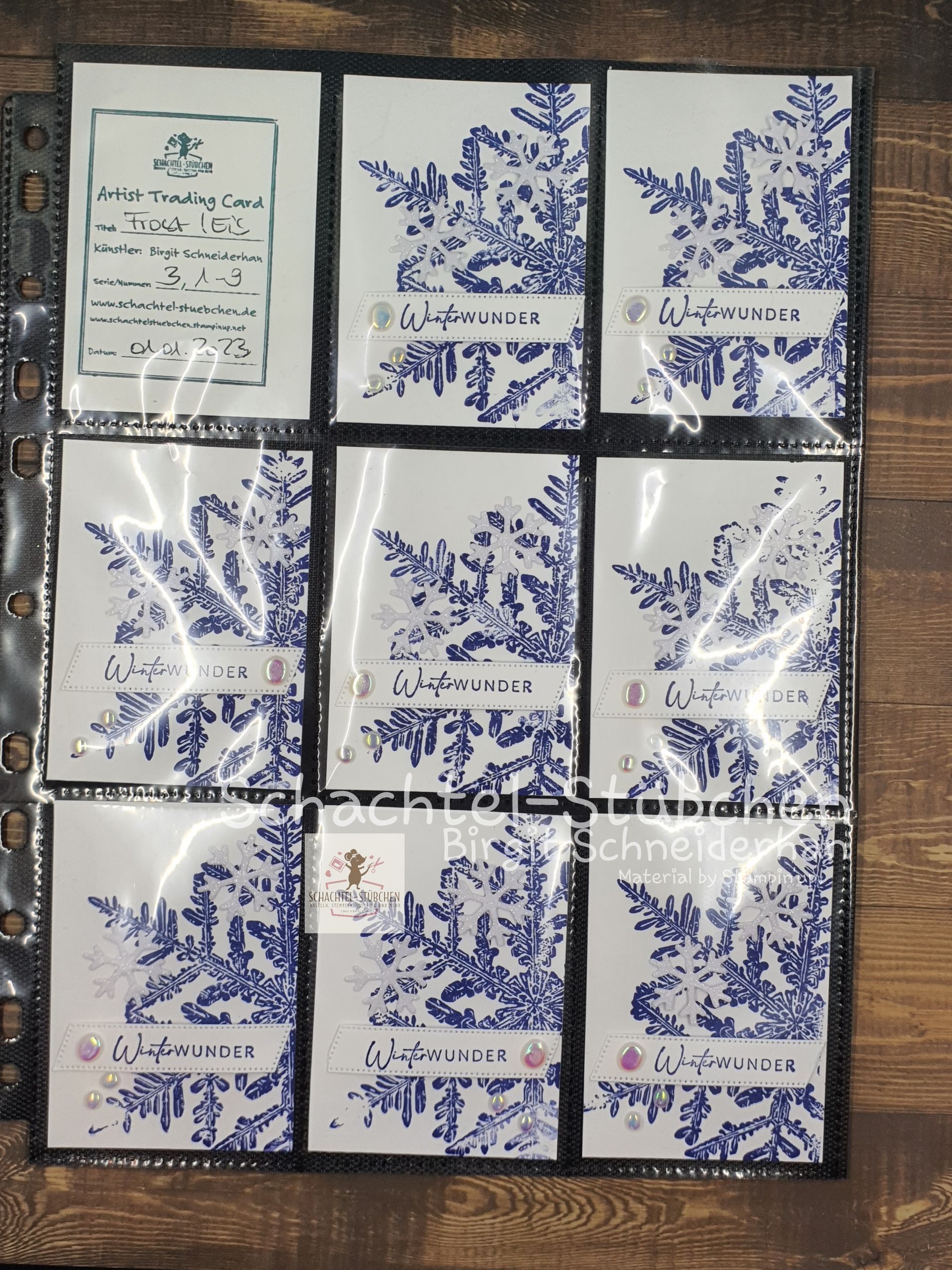 Wieder fertigt ihr 9 ATC Kärtchen in dem Format 2 1/2" x 3 1/2" (6,4 x 8,9 cm) an und schickt sie an: